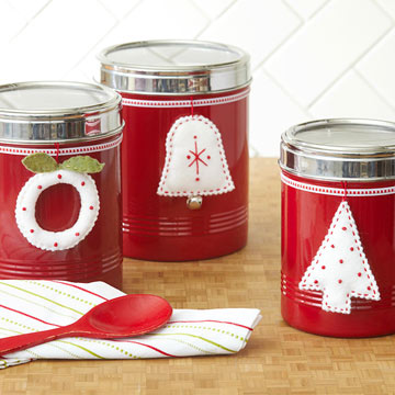 9. Usando seis hebras de hilo rojo, cose a través de la parte superior de cada adorno, dejando un hilo de la longitud deseada para colgar con un lazo y termina con un nudo. Cose un cascabel en el fondo de la campana con hilo dental.